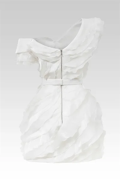 The Celestial Coral Gown embodies elegance and sophistication, with a pastel pink hue inspired by the soft allure of coral under the sunlit sea. Crafted from premium chiffon, the gown flows gracefully with every movement, evoking the sensation of dancing waves. The delicate cutout detail at the waist accentuates the natural curves, emphasizing the wearer’s innate beauty.