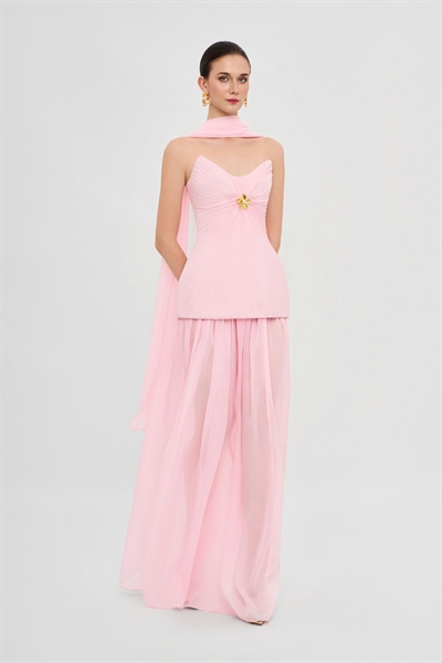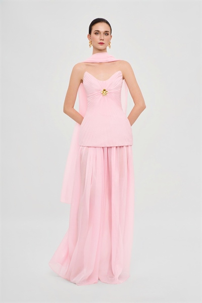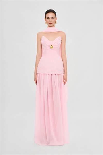 The Rose Éventail Gown by CHYMEOCHY is a poetic ode to modern elegance. Tailored from the finest chiffon, its sculpted bodice unveils undulating fan-shaped pleats — a meticulous composition of layers that frame the décolleté with quiet allure while preserving an air of timeless refinement. A romantic blush hue drifts across the flowing skirt, cascading with a weightless grace that follows every movement. Created for luminous evenings, grand celebrations, and intimate soirées, this gown invites the CHYMEOCHY muse to embody confidence, sophistication, and whispered romance.| SIZE | BUST | WAIST | HIPS | |||