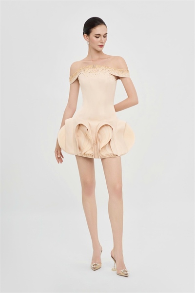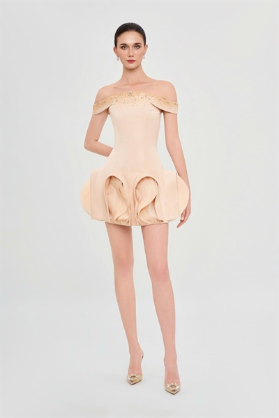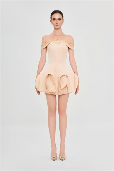 The Starlit Bloom Mini Dress captures the essence of modern elegance infused with celestial poetry. Sparkling crystal embellishments cascade across the shoulders like constellations, illuminating the night with a subtle yet captivating radiance. Delicate laser-cut organza details unfold like tender petals, gently closing at twilight after a day kissed by the sun. Its youthful mini silhouette embodies both freshness and sophistication, making it the perfect centerpiece of this season’s collection. Balancing timeless grace with contemporary flair, the Starlit Bloom Mini Dress is more than just evening wear — it is a declaration of feminine strength, refined beauty, and magnetic allure. Illuminate your evenings with a dress that speaks of stars, elegance, and infinite charm.| SIZE | BUST | WAIST | HIPS | |||